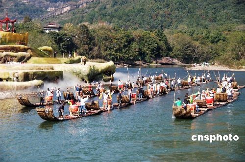 2008年11月14日,福建南平武夷山,張藝謀奧運(yùn)會(huì)后復(fù)出開工第一個(gè)全新導(dǎo)演的“印象系列”——《印象·武夷山》在武夷山國家風(fēng)景區(qū)內(nèi)進(jìn)行舞臺(tái)合練,將于16日在武夷山旅游節(jié)上演出。據(jù)了解,在此次的“印象”系列中,張藝謀會(huì)借鑒北京奧運(yùn)會(huì)的一些創(chuàng)意手法,給觀眾帶來新的視覺體驗(yàn)和驚艷感受。中新社發(fā) 張 斌 攝