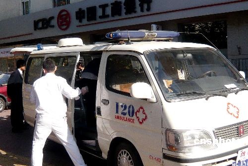 11月15日中午,北京一家工商銀行一位正在辦理個人業(yè)務(wù)的老人突然昏迷休克倒地,銀行工作人員立即呼叫120救護(hù)車前來進(jìn)行搶救。中新社發(fā) 錢興強 攝