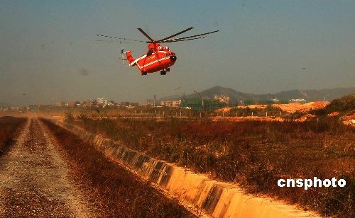 11月15日,隨著一架米-26TC直升機(jī)降落梧州機(jī)場(chǎng),拉開了2008年廣西秋冬季森林航空消防序幕。本次共有3架大型直升機(jī)加入廣西秋冬季航空森林消防工作,這是國(guó)家林業(yè)局西南航空護(hù)林總站首次動(dòng)用如此規(guī)模力量支持廣西航空護(hù)林。它們將航空護(hù)林范圍覆蓋廣西的南寧、柳州、來賓、桂林等,同時(shí)向湖南、廣東輻射。中新社發(fā) 謝志剛 攝