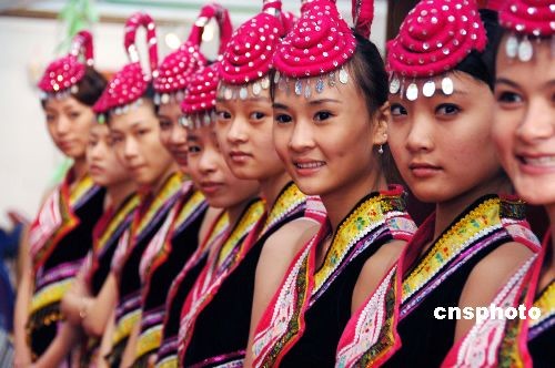 十一月十七日,一家座落于畬族地區(qū)、業(yè)界知名度頗高的茶企業(yè),請來一群美貌畬族姑娘在福建武夷山“第二屆海峽兩岸茶業(yè)博覽會”展覽館里出任企業(yè)產(chǎn)品形象大使,亦為茶博會增添了一道亮麗的風(fēng)景線。中新社發(fā) 鄭祚聲 攝