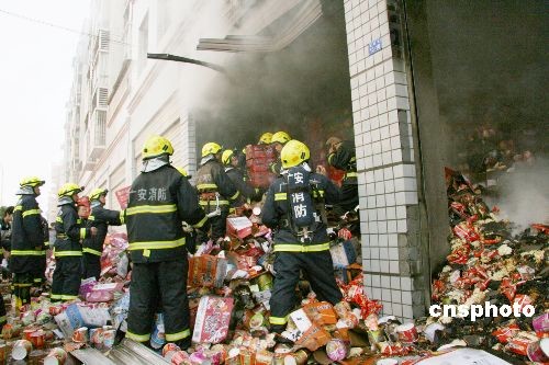 11月19日中午11點45分許,四川省廣安市 “康師傅”方便面廣安地區(qū)總代理的倉庫里價值60多萬的貨物被無情大火燒掉大半。事發(fā)后,廣安區(qū)公安分局110巡警大隊、市區(qū)消防大隊第一時間趕到現(xiàn)場,開展了滅火工作。據(jù)了解,失火的兩個門市面積大約有100平方米,里面裝了60多萬元的貨物,這次損失至少達40萬元左右;馂(zāi)原因正在調(diào)查之中。中新社發(fā) 廣宣 攝