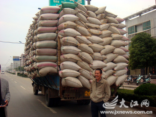24日,新干縣交警在該縣城的金川南大道,查獲了一輛裝載谷殼,且車廂超高2米多的六輪農(nóng)用車。