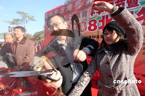北京奧運(yùn)會官方海報第一版底版銷毀儀式在北京地壇書市舉行。
