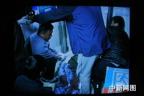 11月29日上午9時(shí)37分,一男子手持匕首在昆明市龍泉路家樂福超市持刀刺傷2名顧客和一名促銷員,隨后將一名趕來現(xiàn)場(chǎng)救治傷員的醫(yī)護(hù)人員挾持。經(jīng)查,該男子名叫陸志文,39歲,此前曾有犯罪前科。圖為該男子被警方擊斃。