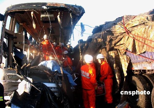 12月2日上午8點(diǎn)40分許,國(guó)道314線新疆庫(kù)車境內(nèi)762公里處,一輛拉煤貨車與一輛從阿圖什開往烏魯木齊的大客車迎頭相撞,目前已導(dǎo)致21人死亡,12人受傷。事故發(fā)生后,新疆阿克蘇地區(qū)立刻啟動(dòng)應(yīng)急預(yù)案,交通部門負(fù)責(zé)人都已趕赴現(xiàn)場(chǎng)參與指揮救援。庫(kù)車縣已成立救治小組,有關(guān)事故原因正在進(jìn)一步調(diào)查中。中新社發(fā) 汪渝 攝