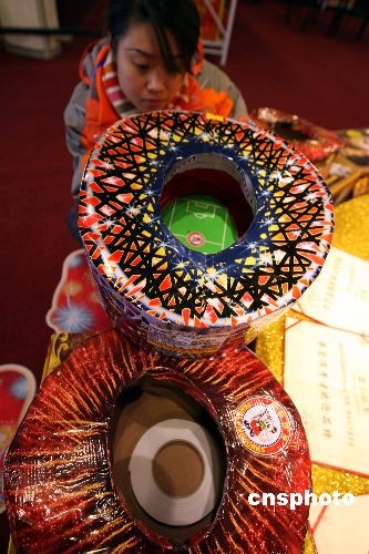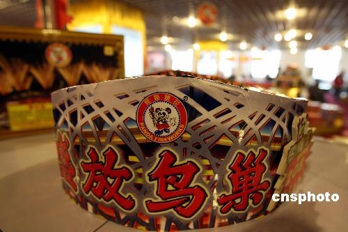 十二月七日晚,北京奧運(yùn)鳥(niǎo)巢煙花獨(dú)家生產(chǎn)及燃放實(shí)施單位—熊貓煙花推出的“!蹦犋B(niǎo)巢系列煙花,與部分京城市民見(jiàn)面。其中一款“鳥(niǎo)巢”形狀的噴花類煙花,立即成為人們關(guān)注的焦點(diǎn)。中新社發(fā) 任海霞 攝