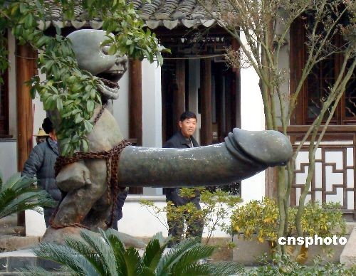 近日,參觀者在蘇州古鎮(zhèn)同里“中華性文化博物館”內觀看雕塑“綁不住的地方”。 據悉,這座面積約7000平方米的性文化博物館是4年前從上海搬遷到同里的,展出古代性文化實物、雕塑、圖畫、書籍等展品2000件左右。中新社發(fā) 王建康 攝