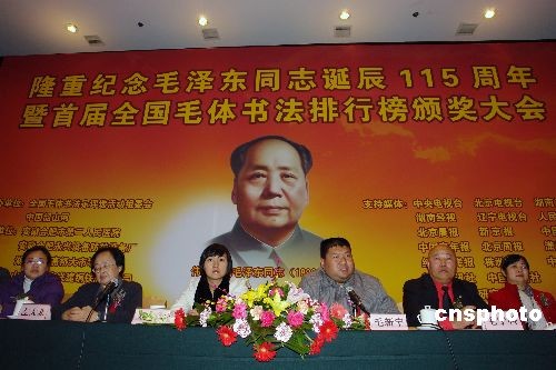 12月17日,紀念毛澤東同志誕辰115周年暨首屆全國毛體書法家排行榜頒獎典禮在北京舉行。毛澤東嫡孫毛新宇到會祝賀,并為成功晉級的毛體書法家頒獎。 中新社發(fā) 王磊 攝