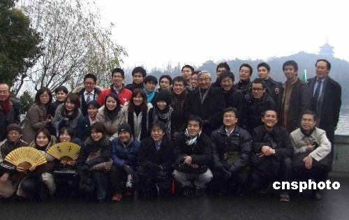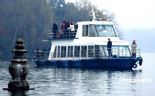 12月24日上午,日本青少年友好使者代表團(tuán)一行38人搭船游覽杭州西湖,在“三潭映月”合影。新田理惠小姐表示:“早就聽說西湖很美,果然很讓我驚喜。雖然不是晴天,但是現(xiàn)在的西湖讓人覺得特別寧靜內(nèi)斂!敝行律绨l(fā) 周翌 攝
