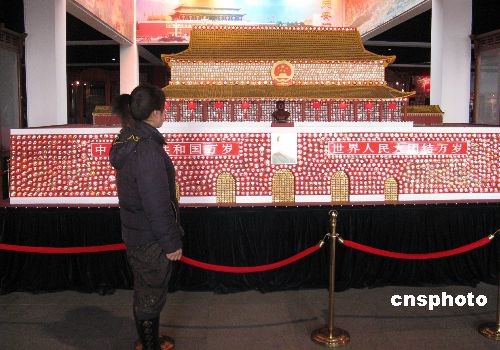 全國(guó)政協(xié)委員、著名毛澤東像章收藏家陳德,不僅建有中國(guó)最大的毛澤東像章陳列館,而且還在國(guó)外建有以展出毛澤東像章為主的中國(guó)文化展覽館,在國(guó)內(nèi)國(guó)外同時(shí)展出毛澤東像章20余萬(wàn)枚。圖為陳德的位于大連市金石灘旅游度假區(qū)內(nèi)的毛澤東像章陳列館一角,該館現(xiàn)在每年接待參觀者40余萬(wàn)人次。中新社發(fā) 沈殿成 攝