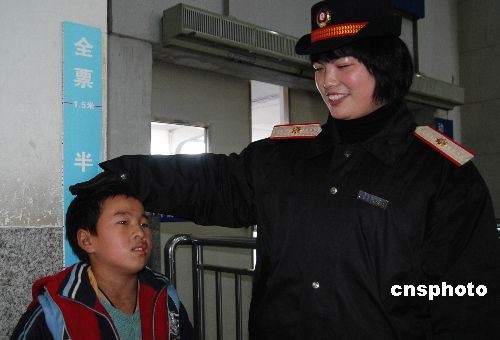 2008年12月25日,蘇州火車站更換了一批兒童票身高標(biāo)識(shí)牌。據(jù)了解,從12月21日起鐵道部決將乘坐火車時(shí)購買兒童半價(jià)票的參照身高標(biāo)準(zhǔn)調(diào)整為1.1米至1.5米。相比原來1.1米至1.4米的標(biāo)準(zhǔn),新標(biāo)高的上限高出了10厘米。中新社發(fā) 朱子寒 攝