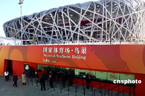 12月25日,國家體育場“鳥巢”新的售票檢票系統(tǒng)開始啟用。原臨時售票處將被設立在場館西北側的永久售票處取代,驗票方式由手工檢票變?yōu)樽詣域炂,而驗票口仍為場館的“K”、“L”口。工作人員表示,“鳥巢”的出口仍為“B”、“C”口,將根據客流量決定是否增開其他出口。圖為鳥巢新設立的永久售票處。中新社發(fā) 富田 攝