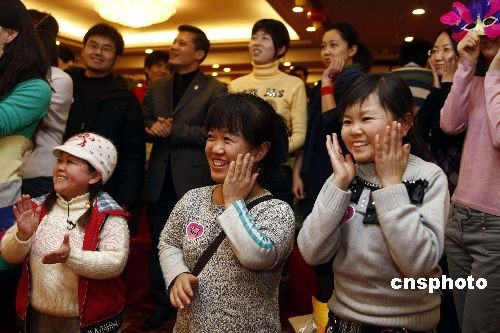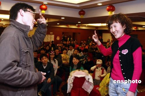 12月25日,三名單身“小矮人”與千余名北京青年共同參加相親會(huì)。在喜慶的圣誕節(jié)日氣氛和愉快的“融冰”游戲中,三名“小矮人”與同齡人消除了陌生感,愉快地歡度佳節(jié)。中新社發(fā) 楊可佳 攝