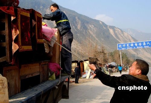 12月26日,北川第一羌寨--貓兒石“吉娜”羌寨竣工,當(dāng)?shù)厍颊用耖_始陸續(xù)搬進(jìn)新居。中新社發(fā) 胥輝 攝