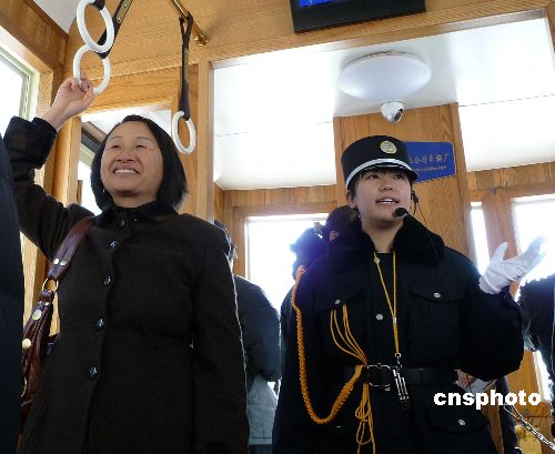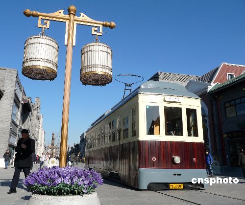 2009年1月1日,北京前門兩輛“鐺鐺車”舉行了開通剪彩儀式后,于上午11點正式載客運行,京城市民及各地游客紛紛乘坐“鐺鐺車”感受老北京的風情。時隔50年后那“鐺鐺”的聲音再次回到了煥然一新的前門大街。 中新社發(fā) 玉龍 攝