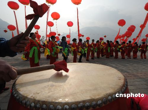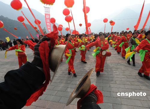 四川汶川大地震極重災(zāi)區(qū)北川縣擂鼓鎮(zhèn)由災(zāi)民組成的腰鼓隊(duì),2009年元旦節(jié)日期間載歌載舞,在余震中辭舊迎新。據(jù)四川省地震臺(tái)網(wǎng)測(cè)定,1月2日晚7時(shí),四川省綿陽市北川縣又發(fā)生一次4.7級(jí)地震,這次余震持續(xù)時(shí)間較短,但成都市區(qū)、眉山市、德陽市等地有明顯震感。中新社發(fā) 賈國榮 攝