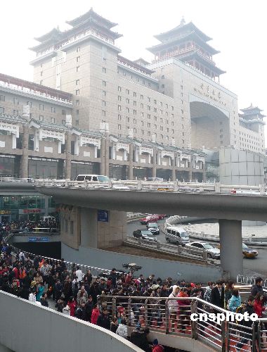 2009年1月17日,北京西站人頭攢動、旅客如織。當(dāng)日,北京西站回家過年的“農(nóng)民工返鄉(xiāng)流、學(xué)生流、探親流”依舊強(qiáng)勁,并呈持續(xù)增長的趨勢。中新社發(fā) 玉龍 攝