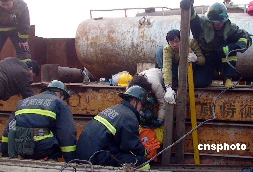 1月19日上午,河南濮陽市一家食品加工點(diǎn)——涼皮作坊的常壓鍋爐發(fā)生爆炸,爐體炸飛20多米高,最后落在30米遠(yuǎn)處的一個(gè)大雜院屋頂上,將房頂砸塌。濮陽市消防支隊(duì)華龍區(qū)大隊(duì)官兵接報(bào)趕到現(xiàn)場(chǎng)后,安全疏散群眾。炸飛鍋爐散落煤炭引起的火災(zāi)在消防官兵的迅速處置下被撲滅,所幸事故未造成人員傷亡。中新社發(fā) 劉敬寬 攝