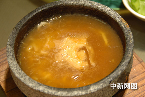 這道用魚(yú)翅、高湯焗制出來(lái)的菜肴,這道菜用料高檔,味香汁濃,營(yíng)養(yǎng)豐富,極具食相,吃后齒頰留香,是該菜館的招牌菜式之一。