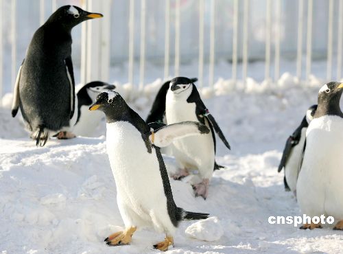 1月26日大年初一,占地1.5萬(wàn)平方米的大型雪場(chǎng)在奧林匹克森林公園建成并正式投入使用。從初一到正月十五,奧林匹克森林公園將舉辦以“和企鵝一起去戲雪”為主題的雪上嘉年華,市民不僅可以在這里打雪仗、滾雪球,還可以跟10只可愛(ài)的小企鵝來(lái)一次親密接觸。10只可愛(ài)的小企鵝來(lái)自青島極地海洋世界,活動(dòng)期間它們將在特別制作的企鵝小屋為游客表演助陣,游客和這些快樂(lè)的小精靈屆時(shí)可以近距離接觸、合影留念。中新社發(fā) 富田 攝