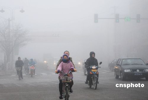 2009年2月1日(正月初七),蘇北贛榆縣境內(nèi)遭遇新春首場大霧,能見度較低,當(dāng)?shù)亟煌ü膊块T迅速啟動應(yīng)急預(yù)案,組織干警疏通行人和車輛,確保行人車輛安全無事故。中新社發(fā) 朱代桂 攝