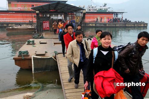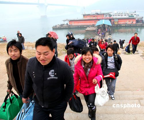 2月1日,47艘客船、高速客船出川,1.5萬(wàn)多名出川農(nóng)民工返城,三峽庫(kù)區(qū)迎來(lái)節(jié)后春運(yùn)首次高峰,海事、公安、港口加大出川旅客進(jìn)港秩序維護(hù),沒有一艘客船出現(xiàn)超載。中新社發(fā) 望作信 攝