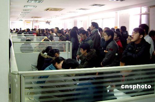 2月3日,杭州新年首場(chǎng)招聘會(huì)開(kāi)場(chǎng),小小的招聘會(huì)廳內(nèi)擠滿渴望就業(yè)的人們。目前就業(yè)形勢(shì)嚴(yán)峻,供仍遠(yuǎn)遠(yuǎn)大于求。中新社發(fā) 王磊 攝
