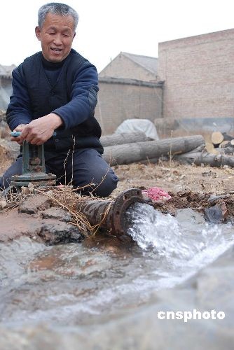 2009年2月4日,山西小麥產(chǎn)地運(yùn)城新絳縣農(nóng)民在全力以赴進(jìn)行抗旱工作。入冬后,山西省受旱面積達(dá)3274萬(wàn)畝,其中山西小麥主產(chǎn)區(qū)運(yùn)城、臨汾兩地農(nóng)作物受旱面積達(dá)634萬(wàn)畝,同時(shí)有106萬(wàn)群眾及19萬(wàn)頭牲畜出現(xiàn)飲水難問(wèn)題。2月3日,山西省政府防汛抗旱指揮部已發(fā)布干旱橙色預(yù)警(Ⅱ級(jí))并啟動(dòng)響應(yīng)行動(dòng)。山西省財(cái)政緊急下?lián)芸购蒂Y金1000萬(wàn)元。中新社發(fā) 高新生 攝