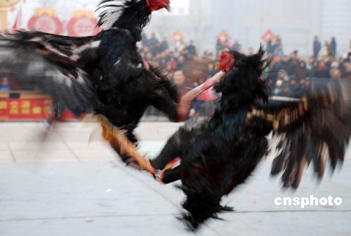 2月7日,元宵節(jié)臨近,斗雞大賽在青島鳳凰島民間藝術(shù)節(jié)舉行,這一流行于古代宮廷的娛樂活動(dòng)走進(jìn)民間,引來了眾多市民觀看。中新社發(fā) 俞方平 攝