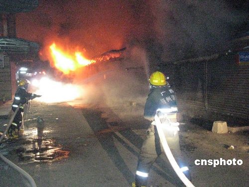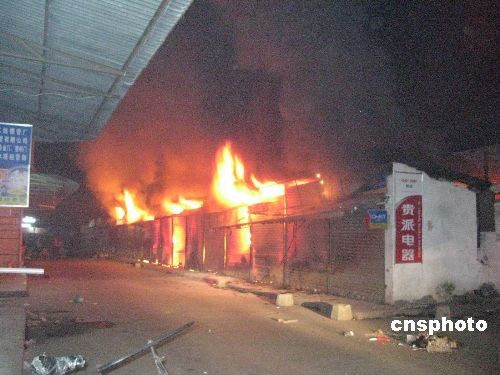 2月7日凌晨3點(diǎn)多,廣西梧州市最大的批發(fā)市場(chǎng)——梧州市兩廣批發(fā)市場(chǎng)B區(qū)發(fā)生大火,12個(gè)鋪面被燒。梧州市消防支隊(duì)緊急出動(dòng)22名官兵趕赴現(xiàn)場(chǎng)救援,大火于5時(shí)24分被成功撲滅。據(jù)了解,該排鋪面內(nèi)銷(xiāo)售的電器設(shè)備幾乎全部被燒毀,無(wú)人員傷亡。目前火災(zāi)損失和火災(zāi)事故原因正在進(jìn)一步調(diào)查中。中新社發(fā) 楊雁 攝