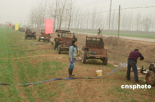 2月8日,安徽省鳳陽縣府城鎮(zhèn)顧臺村的村民在田間抗旱保苗。由于青壯勞力外出務(wù)工,當(dāng)?shù)卦S多家庭勞力缺乏,面對歷史上罕見的嚴重旱情、小麥逐漸枯黃而一籌莫展。當(dāng)?shù)卣l(fā)動村民組織“互幫互助隊”,幫助一些老弱病殘家庭的農(nóng)戶。中新社發(fā) 馬順龍 攝
