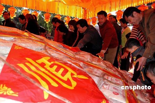 2月9日,元宵節(jié)澎湖特有的“乞龜”民俗在福建泉州天后宮舉行盛大的“平安乞龜”活動(dòng),為兩岸鄉(xiāng)親送上元宵祝福。中新社發(fā) 傅丹丹 攝