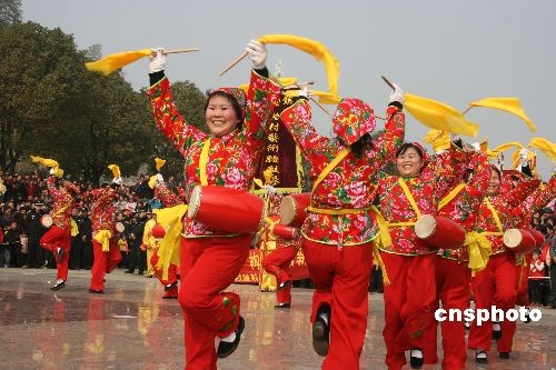 2月9日下午,來(lái)自杭州市桐廬縣各鄉(xiāng)鎮(zhèn)、街道的16支腰鼓隊(duì)、上千名腰鼓手齊聚桐廬縣城中心廣場(chǎng),為現(xiàn)場(chǎng)數(shù)萬(wàn)名群眾帶來(lái)了一波波精彩的腰鼓表演,在元宵佳節(jié)為桐廬縣百姓送上了一份歡快的“文化大餐”。中新社發(fā) 張潔 攝