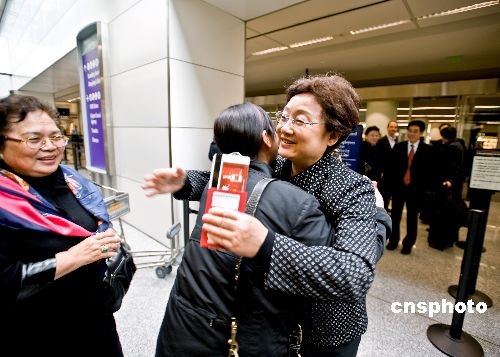 當(dāng)?shù)貢r間二月十四日,中國國務(wù)院僑辦主任李海峰和《四海同春》藝術(shù)團(tuán)結(jié)束了為期十八天的美國慰僑演出,離開舊金山返京。圖為李海峰離美前向前來送行的僑胞依依惜別。中新社發(fā) 陳鋼 攝