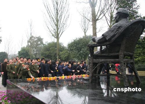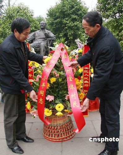 2月19日,廣安區(qū)協(xié)興鎮(zhèn)牌坊村村民在為小平銅像獻(xiàn)花以示懷念。當(dāng)日,是世紀(jì)偉人鄧小平逝世12周年紀(jì)念日,四川省廣安市和來自全國各地的各界人士紛紛自發(fā)前來為鄧小平銅像獻(xiàn)花以示深切懷念。中新社發(fā) 杜修戰(zhàn) 攝