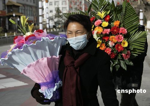 2月24日,適逢藏歷年三十,大批西藏拉薩市民手捧花束花籃趕往大昭寺獻(xiàn)花,祈求來年吉祥如意。中新社發(fā) 劉震 攝