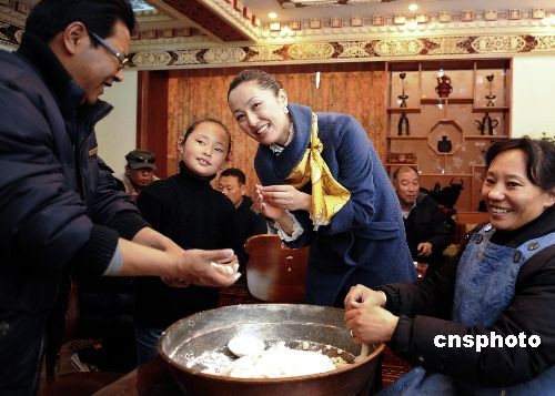 藏歷新年前夕,在中國國際航空公司擔任國際航線空姐職務(wù)的德慶央宗專程從北京帶著父母趕回拉薩,和親朋好友歡度藏歷新年。德慶央宗的父親曾供職于中國《民族畫報》,母親供職于中國藏學(xué)研究中心,他們一家已經(jīng)多年沒有回西藏過藏歷新年。中新社發(fā) 廖攀 攝