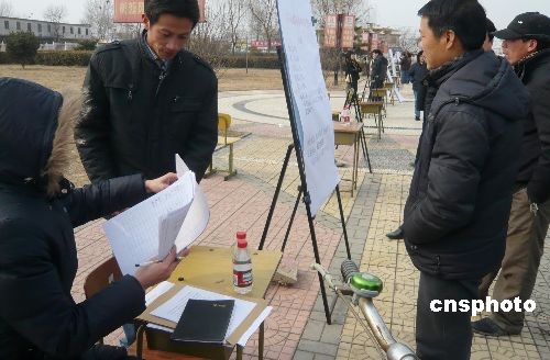 3月2日,北京市房山區(qū)舉行2009農村鄉(xiāng)鎮(zhèn)企業(yè)人才招聘會,是次招聘會以京郊鄉(xiāng)鎮(zhèn)企業(yè)為主面向農村招聘相應人才,參加招聘項目有農業(yè)生態(tài)科技管理、技師技工、商場銷售、家政服務、現(xiàn)代園林管理、工貿公司以及個體經營企業(yè),對個人求職者現(xiàn)場面試,同時招聘會還設立了勞務招工咨詢處為應聘者解答招聘事項。中新社發(fā) 錢興強 攝