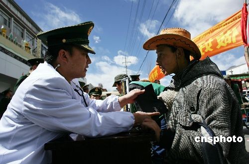 3月5日是中國“學雷鋒日”,武警醫(yī)療小分隊在拉薩市北京中路為藏族民眾義診。中新社發(fā) 劉震 攝