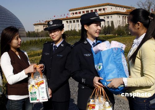 3月6日,首都藝術(shù)家協(xié)會(huì)演職人員及全國(guó)推新人大賽獲獎(jiǎng)選手,到北京西城公安分局西長(zhǎng)安街派出所慰問(wèn)全國(guó)“兩會(huì)”值勤女干警,并現(xiàn)場(chǎng)送上“三八”節(jié)日的問(wèn)候及慰問(wèn)品。中新社發(fā) 鄭雄增 攝