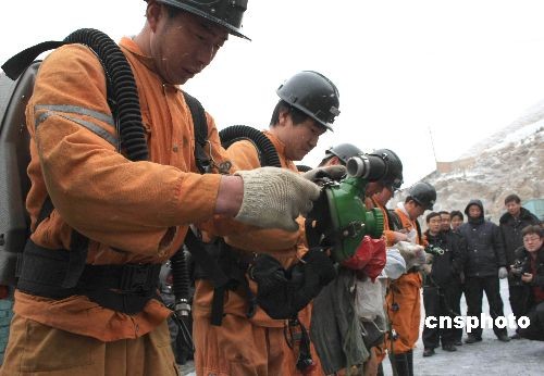 3月12日,位于甘肅省武威市天?h境內(nèi)的一座煤礦發(fā)生事故,被困井下的6名當班工作人員全部遇難。該煤礦屬于天祝隆德煤業(yè)有限責任公司所有,證照齊全,1996年建成投產(chǎn),年設(shè)計生產(chǎn)能力6萬噸。今年2月13日,該礦提出申請井下維修報告,16日獲批準進行維修,至事故發(fā)生時仍在維修整改之中,并未投入生產(chǎn)。圖為救援人員作下井前的準備工作。中新社發(fā) 殷春永 攝