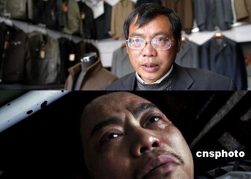 3月14日,西藏拉薩朵森格路,湖南商人劉國兵在其商鋪里經(jīng)營服裝生意。一年前,劉國兵十九歲的女兒被燒死在商店內(nèi),自己也身受重傷。圖為如今繼續(xù)經(jīng)商的劉國兵與一年前躺在醫(yī)院病床上的劉國兵資料圖片。中新社發(fā) 廖攀 攝