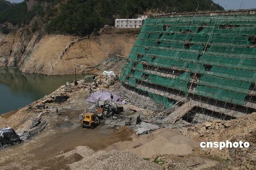 3月15日,浙江省天臺縣龍溪電站對水庫大壩進行加固。最近,該縣利用枯水期對所有的病危水庫進行除險加固,確保安全度汛。中新社發(fā) 丁必裕 攝