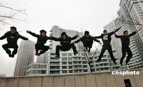 3月21日,一只名為“城市猴子”的北京跑酷隊(duì)在城市的高樓林立中訓(xùn)練。跑酷運(yùn)動(dòng)誕生于上世紀(jì)80年代的法國(guó),意為把整個(gè)城市當(dāng)作一個(gè)大訓(xùn)練場(chǎng),一切圍墻、屋頂都成為可以攀爬、穿越的對(duì)象,是在都市青年中很流行的時(shí)尚運(yùn)動(dòng)。此項(xiàng)運(yùn)動(dòng)自三年前傳入中國(guó),深受酷愛極限運(yùn)動(dòng)的青少年喜愛。據(jù)悉中國(guó)首屆正規(guī)跑酷比賽將于本月底在北京舉行。中新社發(fā) 富田 攝