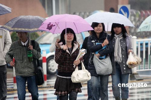 3月24日,山東濰坊,行人們冒雨行走于市區(qū)街頭。當(dāng)日,一場(chǎng)小雨雪天氣造訪山東濰坊市區(qū),同時(shí)氣溫也隨之大幅下降,最低氣溫跌至零下3攝氏度,讓人們領(lǐng)教到了“倒春寒”的威力。中新社發(fā) 張馳 攝