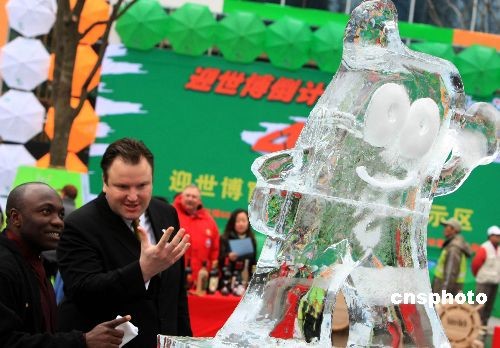 3月27日,2010年上海世博會迎來倒計(jì)時400天,上海市舉行一系列發(fā)布與紀(jì)念活動。其中,亮相于上海南京路上的“海寶冰雕”吸引路人“眼球”,包括外國游客。中新社發(fā) 湯彥俊 攝