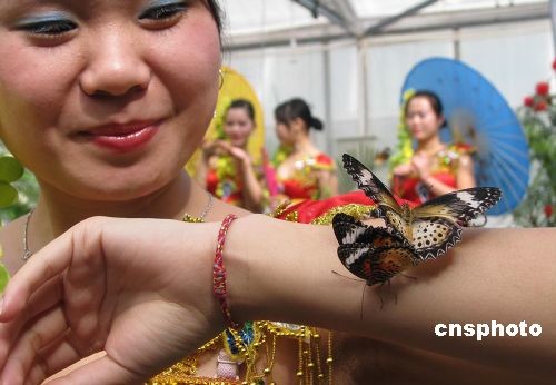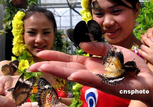4月1日,位于北京植物園內(nèi)的熱帶蝴蝶生態(tài)園正式開園,數(shù)千只色彩斑斕的蝴蝶和數(shù)十種千奇百怪的蟲子將正式與游客見(jiàn)面。熱帶生態(tài)蝴蝶園是中國(guó)內(nèi)地首次從馬來(lái)西亞檳城蝴蝶園進(jìn)口的集昆蟲蝴蝶標(biāo)本、活體昆蟲展示和活蝴蝶放飛為一體的具有知識(shí)性、趣味性、科普性、教育性的昆蟲蝴蝶科普生態(tài)園,也是國(guó)內(nèi)第一家進(jìn)口的活體蝴蝶和昆蟲品種最全、規(guī)模最大、蝴蝶昆蟲標(biāo)本最多科普展。熱帶蝴蝶生態(tài)園共分為三個(gè)展區(qū):蝴蝶館、昆蟲館、科普標(biāo)本館。圖為蝴蝶生態(tài)園吸引游客。中新社發(fā) 錢興強(qiáng) 攝