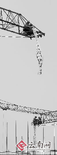 圍在下面的討薪工人們反映說,最根本的原因是施工方云南某建筑集團(tuán)公司第一分公司不付清他們工錢。爬到塔吊上的7名農(nóng)民工都是工地帶班的,他們手下所帶的農(nóng)民工少則幾十人,多則上百人。因?yàn)闆]有發(fā)工錢給大家,他們怕大家找他們要錢,怕大家動手打他們,他們才爬塔吊討工錢的。