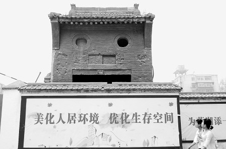 工地一位負(fù)責(zé)人講,考慮到這座門牌樓已經(jīng)有上百年的歷史,就沒(méi)有隨著城中村改造整體拆除,暫時(shí)保護(hù)起來(lái)。“‘囧’?我還沒(méi)發(fā)現(xiàn),難怪有很多人來(lái)這里轉(zhuǎn)悠!彼f(shuō),最近很多年輕人來(lái)看這座門牌樓,還有好多人拿著相機(jī)拍照。 ( 李卓洋)