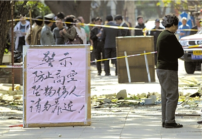 “像是地震,太可怕了!”住在3層的大媽臉色慘白,向眾人講述事發(fā)一幕。她說,當(dāng)時(shí)正在看電視,突然聽到“嘭”的一聲巨響,感覺大地一抖,聽到玻璃破碎和石頭砸落的聲音。